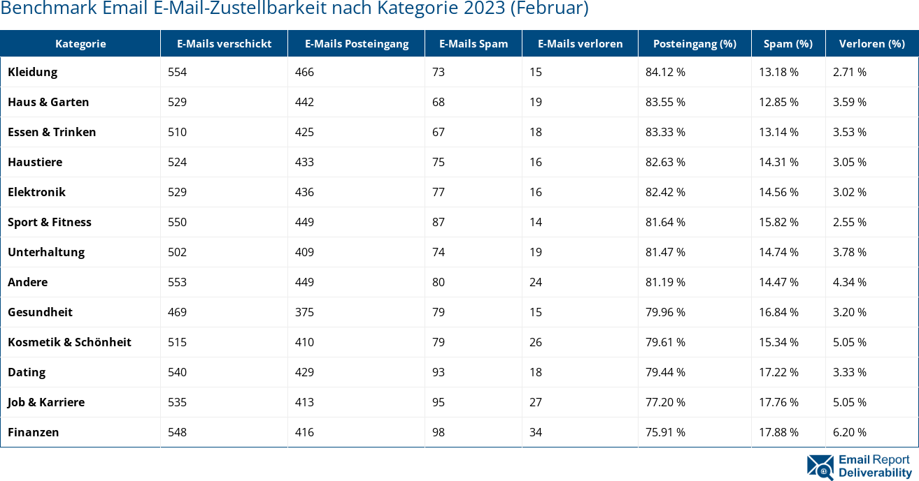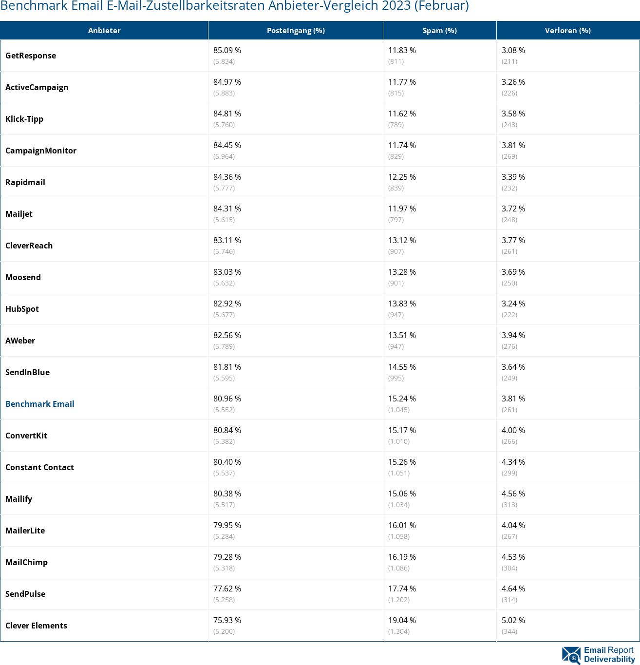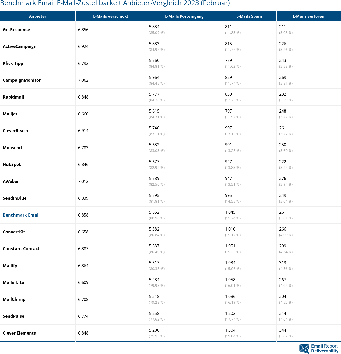 Benchmark Email E-Mail-Zustellbarkeitsbericht für das Jahr 2023 (Februar)
